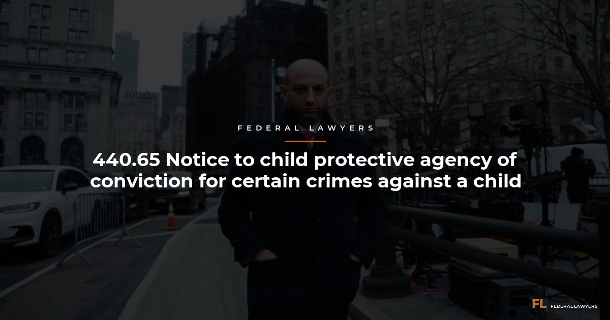 In New York, Penal Code 440.65 gives the state the authority to submit a notification to child protective services. The notification informs child protective services that the parent or legal guardian of the child was convicted of a crime related to the child. Under related laws, the notification provides child protective services with the authority to take immediate action.