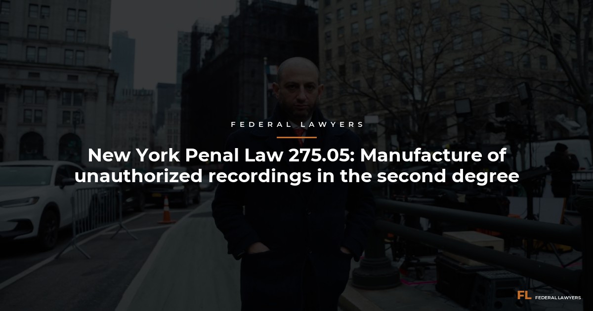 Under New York law, there are different degrees of manufacture of unauthorized recordings. Second-degree manufacture of unauthorized recordings primarily deals with the transfer of unlawfully-recorded performances. It is a violation of New York Penal Law § 275.05. Any time a recording is transferred unlawfully for profit, it falls under the category of manufacturing an unauthorized recording in the second degree.